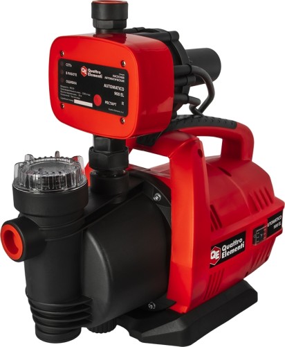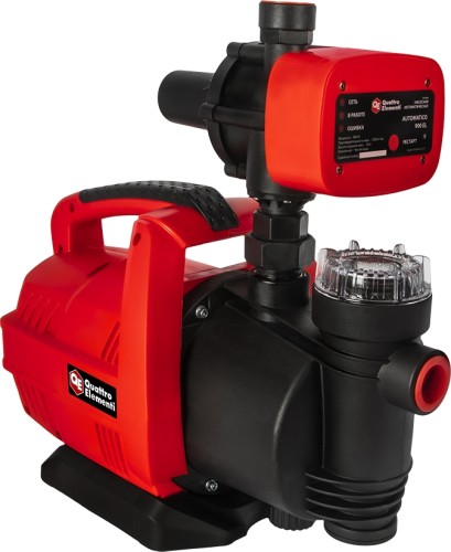 Автоматическая насосная станция Quattro Elementi Automatico 900EL предназначена для перекачивания чистой воды, не содержащей песка, грязи, абразивных частиц, волокнистых включений и любых иных загрязнений. Обеспечивает автоматическое бесперебойное снабжение водой. Идеально подходит для водоснабжения дач, домов и частных домохозяйств из колодцев, скважин и других источников чистой воды с глубины не более 9 метров. Автоматическая станция водоснабжения Automatico 900 EL состоит из электрического двигателя, насосной части, гидравлической арматуры, блока автоматики, фильтра грубой очистки.Отсуствие гидроаккумулятора делает эту станцию проще,компактнее и дешевле.