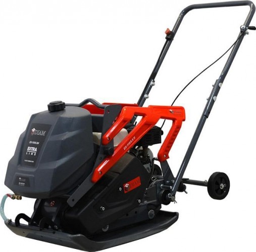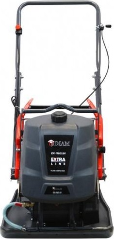 Виброплита Diam EX- 110/5.5 H - универсальная, мощная виброплита для уплотнения асфальта, щебня, грунтов и других материалов. Обладает высокими потребительскими характеристиками и надежностью. Виброплита снабжена транспортировочными колёсами для перемещения, складной ручкой для удобной транспортировки, комплектуется баком для воды, который необходим при уплотнении асфальта. Основание виброплиты имеет загнутые края, что позволяет избежать полос при уплотнении асфальта и изготовлено из высокопрочной стали методом штамповки, что в отличии от сварки является более надежным способом изготовления.