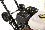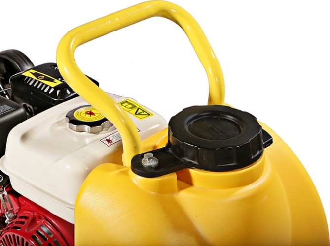 В конструкцию виброплиты вмонтирована система подачи воды на трамбовочную плиту для работ по асфальту с вместительным баком на 13 литров.