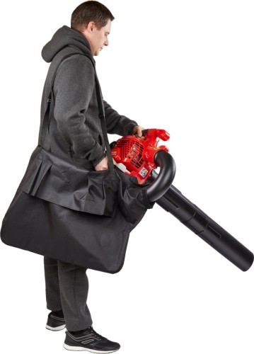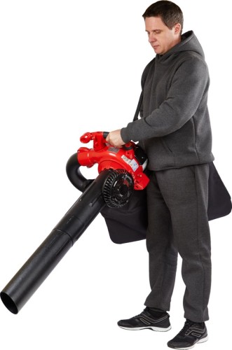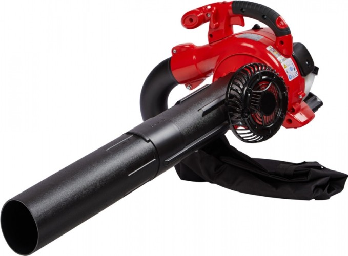 Воздуходув имеет функции обдув, всасывание, измельчение. Небольшой вес 5,8 кг и прорезиненная рукоятка помогают сделать работу комфортной.