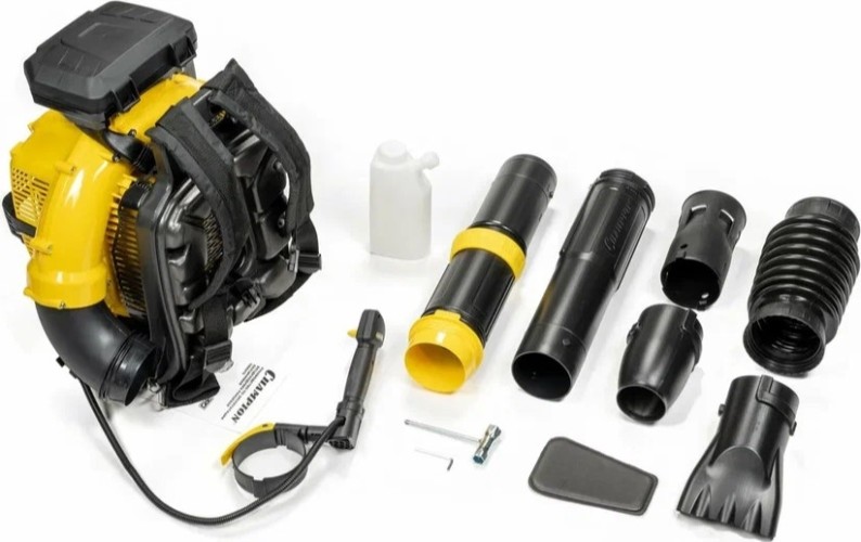 Малый вес бензиновой воздуходувки Champion GBR476, отличная эргономика, ранец анатомической конструкции с мягкими ремнями для переноски и управление одной рукой делают работу по уборке территории высокопроизводительной и комфортной. Воздуходувка поставляется с набором инструментов и аксессуаров для обслуживания.