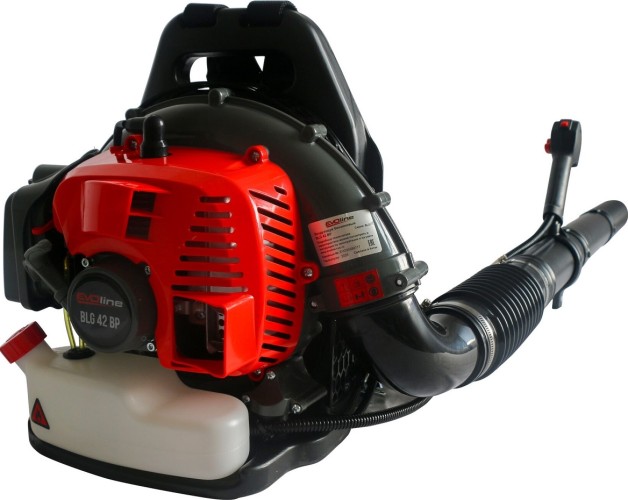 Двигатель воздуходув EVOline BLG 42 BP установлен на ранцевое основание, что позволяет снять нагрузку с рук оператора, а вместительный топливный бак дает возможность работать остановки долгое время.