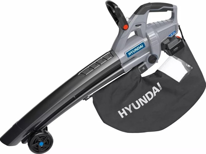 Аккумуляторная воздуходувка - пылесос Hyundai HYL 4009 для сбора сухой листвы и мелкого мусора с газона и дорожек. В режиме садового пылесоса мусор проходит через мульчер - измельчитель и перемалывается с коэффициентом 1:10, что позволяет уменьшить объем сухих листьев в 10 раз. Мульча далее поступает в тканевый мусоросборник объемом 45 литров, Опорные колеса позволяют значительно упростить сбор листьев с поверхности газона. В режиме воздуходувки воздух с большой производительностью и скоростью нагнетается и подается через специальный патрубок. Объемом подачи воздуха достигает 720 м3/час, скорость воздушного потока до 65 м/сек. Пылесос для листьев предназначен исключительно для обработки растительных остатков и садового мусора, таких как трава и небольшие ветки. Для работы необходимо установить два аккумулятора по 20 Вольт.