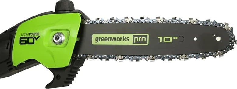Высоторез/Сучкорез аккумуляторный Greenworks Арт. 1402107, 60V, 25 см, без АКБ и ЗУ. Инструмент с легкостью справиться с обрезкой ветвей и сучьев на высоте более 4-х метров благодаря 3-х секционной штанге длиной 254 см. Аккумуляторный инструмент имеет ряд преимуществ перед бензиновым. Он экологичен, не загрязняет окружающую среду выхлопами СО, имеет низкие уровень шума и вибрации. Прост в эксплуатации. Его не нужно заводить, включение происходит нажатием одной кнопки. Прост в эксплуатации. Замена фильтров и свечей не требуются. Нет необходимости смешивать бензин с моторным маслом. Нужно только пополнять масляный бачок для смазки цепи. Инструмент работает от Li-ion аккумулятора 60V совместимого с 30+ моделями полупрофессионального садового инструмента из линейки Greenworks 60V. На инструмент предоставляется расширенная гарантия 3 года.