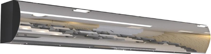 Тепловая завеса Бриллиант для защиты дверей и ворот высотой от 3 до 5м. Благодяря верхнему всасыванию воздуха, передняя панель завес остается всегда чистой.