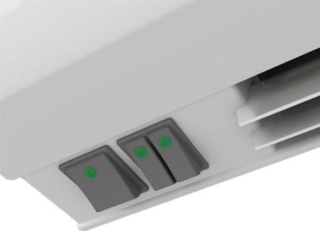 Завеса работает в трех режимах тепловой мощности – "режим вентиляции", "половина мощности", "полная мощность". Переключение между режимами осуществляется при помощи пылевлагозащищенных клавиш со световой индикацией работы, которые расположены на корпусе завесы.