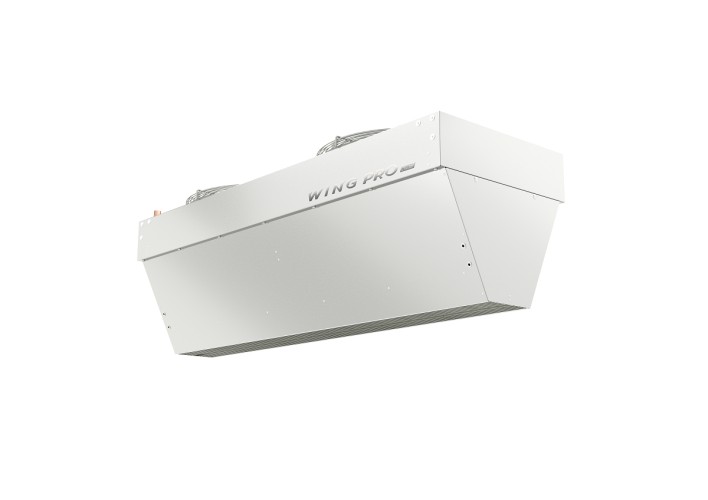 Промышленная воздушная завеса с водяным теплообменником Wing Pro W150 R1 EC создает теплый воздушный барьер при открытом проёме, тем самым препятствует холодному воздуху с улицы проникнуть внутрь помещения. Используется на складах, ангарах, станциях техосмотра, депо и прочих промышленных объектах с большими размерами ворот и продолжительным временем открытия. Завеса R1 имеет однорядный теплообменник, поэтому её применение рекомендовано при теплоносителе не ниже 80 °C. Запрещено использование во влажных помещениях.